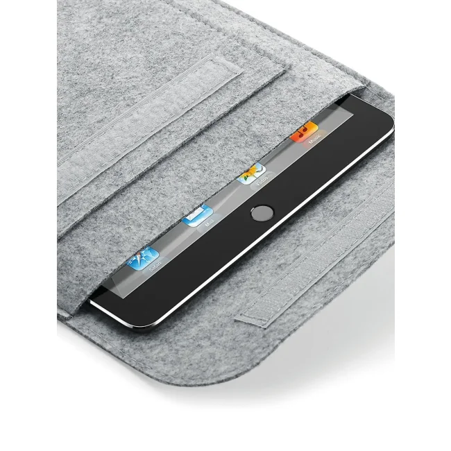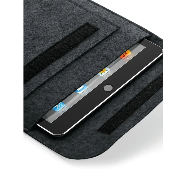 Fodera per iPad in poliestere feltro con tasca frontale e chiusura rip-strip