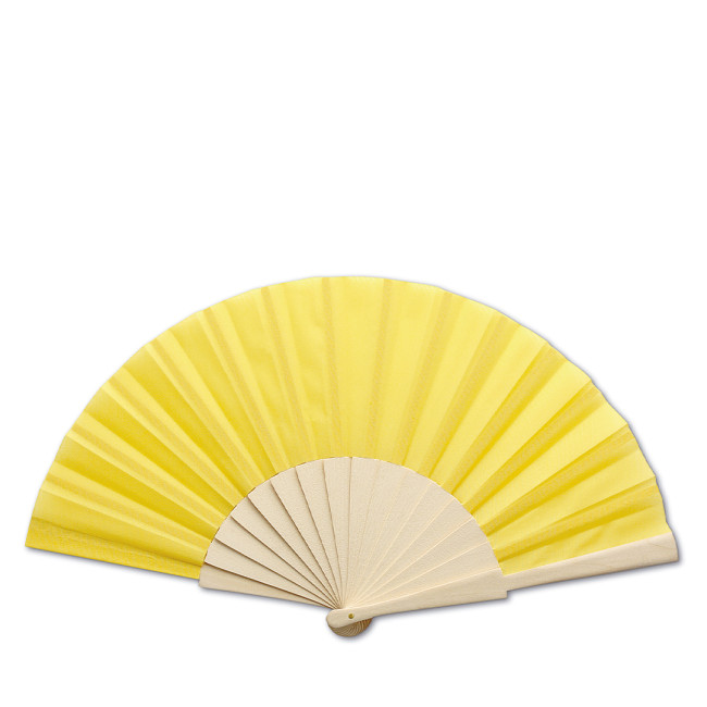 Ventaglio della linea natura con resistente tessuto in poliestere 190T. Stecche in legno resistente. Disponibile in un'ampia gamma di colori. Presentato in una scatola di cartone individuale.
