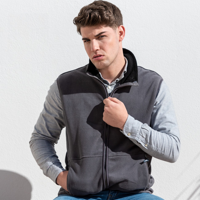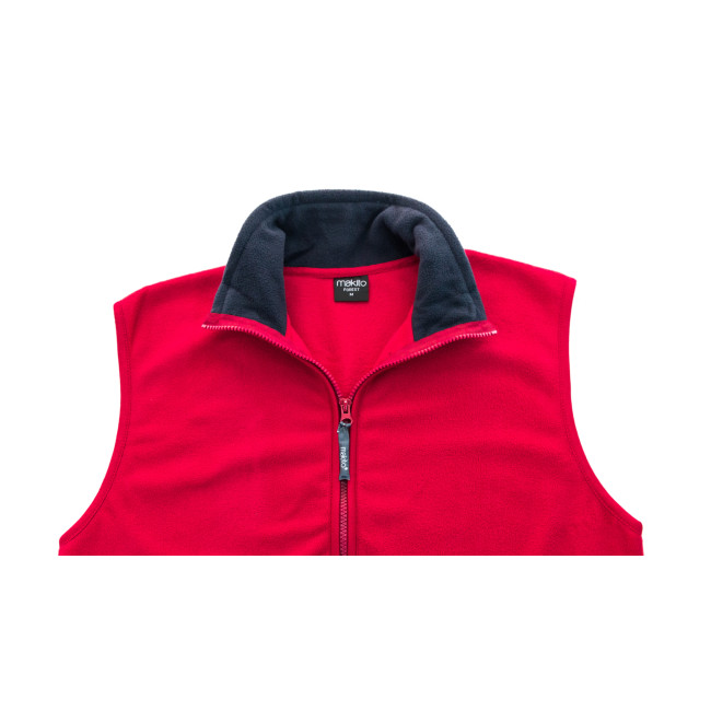 Gilet in caldo e morbido pile da 280 g/m2 con trattamento anti-pilling. Con colletto interno colorato, chiusura a zip con nastro nel tiretto, tasche laterali con zip ed elastico in vita. Disponibile nelle taglie M, L, XL, XXL.