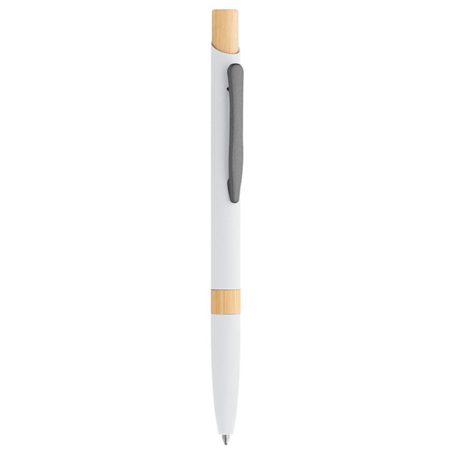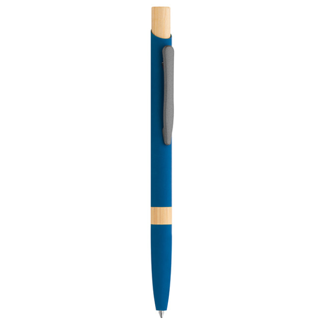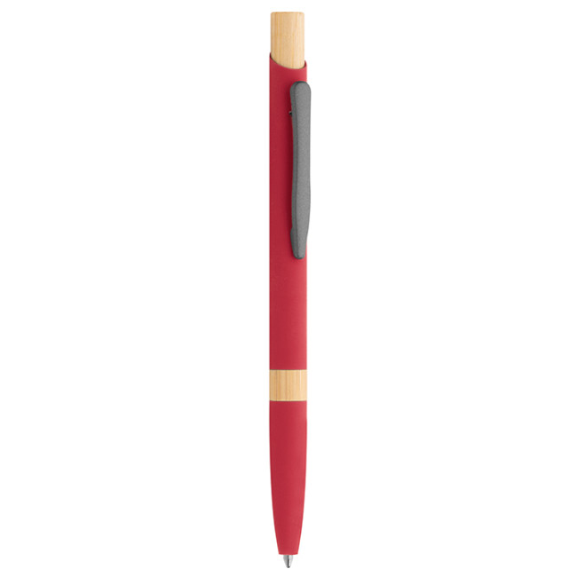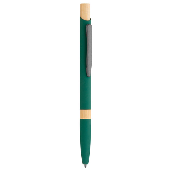 penna a sfera in metallo meccanismo a scatto fusto lacca soft touch e bamboo minuterie in metallo grigio refill nero