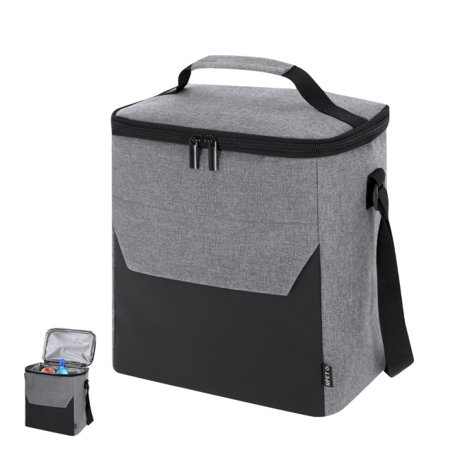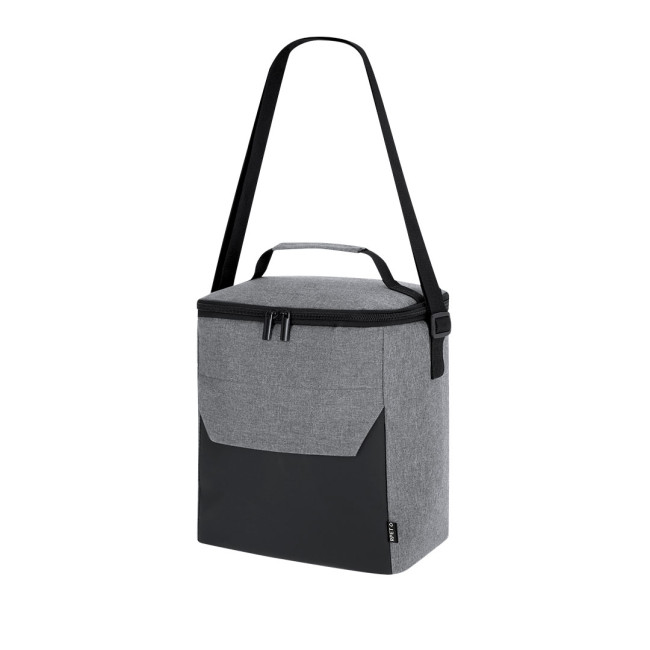 Frigorifero realizzato in resistente RPET 600D, progettato per mantenere freschi i tuoi alimenti. Include un compartimento principale con chiusura a zip e doppio tiratore metallico, tasca frontale con chiusura a zip, tracolla regolabile e maniglia imbottita. Il materiale RPET promuove la sostenibilità, contribuendo al riutilizzo dei rifiuti plastici.