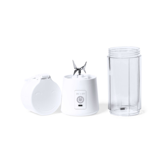 Frullatore realizzato in resistente materiale ABS con finitura bianca. Capacità di 380 ml e potenza di 150 W, con pulitore e pinzette inclusi. Batteria da 2.000 mAh, con connessione di tipo C (cavo incluso). Presentato singolarmente in una scatola di design kraft, con manuale di istruzioni in inglese e spagnolo.