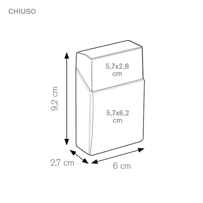 cm 23x29,5 ca (aperto) cm 6xh9,2x2,7 ca (chiuso)