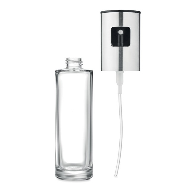 Dispenser spray per olio, in vetro e con coperchio in acciaio inossidabile. Capacità: 100 ml. Con questo dispenser in vetro per l'olio non avrete mai più insalate troppo condite grazie e potete dosarlo facilmente anche mentre si cucina.