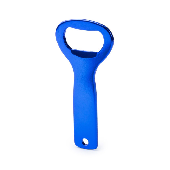 Apribottiglie in alluminio in un'ampia gamma di colori vivaci. Con impugnatura fustellata per lanyard - non incluso -. Appositamente progettato per la stampa laser.