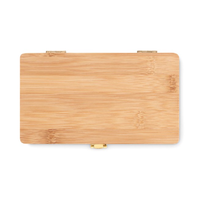 Pratico set di 21 pezzi presentato in una custodia di bambù dall'aspetto naturale. Il regalo perfetto per un tuttofare o un falegname dilettante. Questa utile scatola ha tutti gli strumenti essenziali che si dovrebbe avere in casa nel caso in cui siano necessarie riparazioni o piccoli progetti. Contiene 3 cacciaviti, 10 bit in supporto, 3 misure a taglio, 3 misure Torx e 1 adattatore, 4 prese, 1 taglierina, 1 manico e 1 connettore. Il bambù è un prodotto naturale, ci possono essere leggere variazioni di colore e dimensioni per articolo, che possono influenzare il risultato finale della personalizzazione. Dimensioni della scatola 19,5x11,8x3 cm. FSC®-certified | FSC 100%, N5.7, FSC-C213206