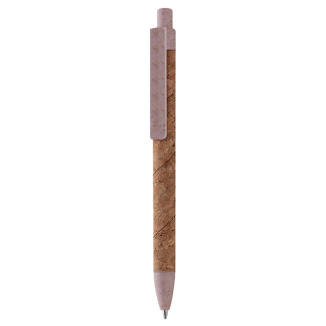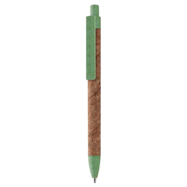 penna a sfera meccanismo a scatto corpo in sughero minuterie in paglia di frumento refill inchiostro nero tecnica di stampa consigliata: serigrafica - tampografica - UV