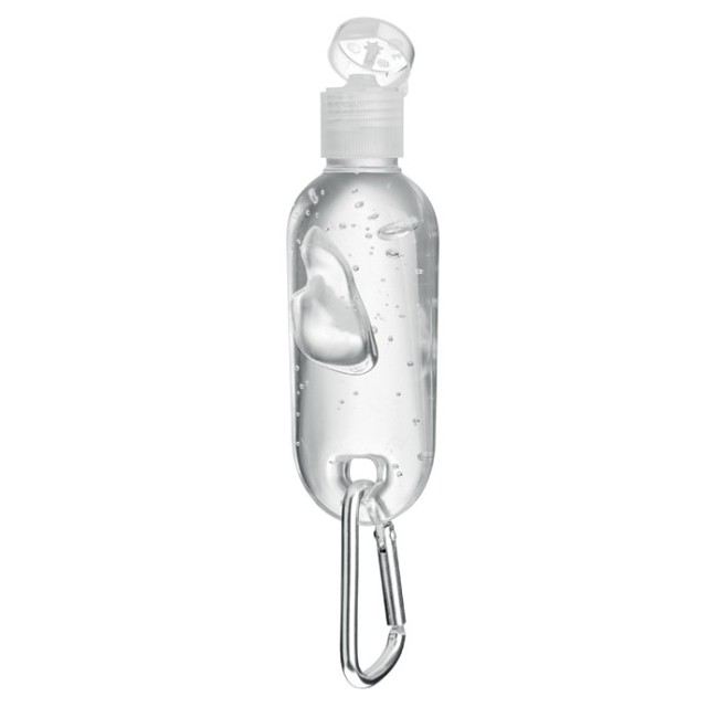 Gel mani in flacone in RPET ricaricabile con moschettone. Capacità 30ml.