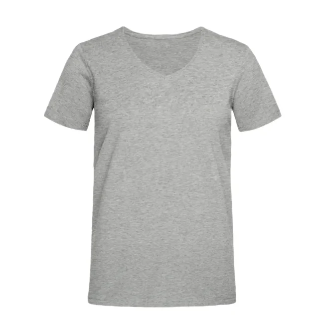 100% cotone. T-shirt genderless manica corta, set-in, scollo a V con costine in cotone/elastane, struttura con cuciture laterali, doppie cuciture su maniche e fondo vita, etichetta strappabile. Composizione Grey Heather: 93%Cot 7%Pol.