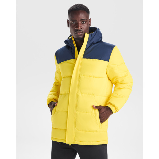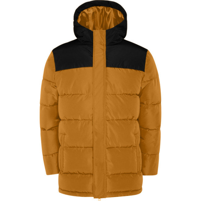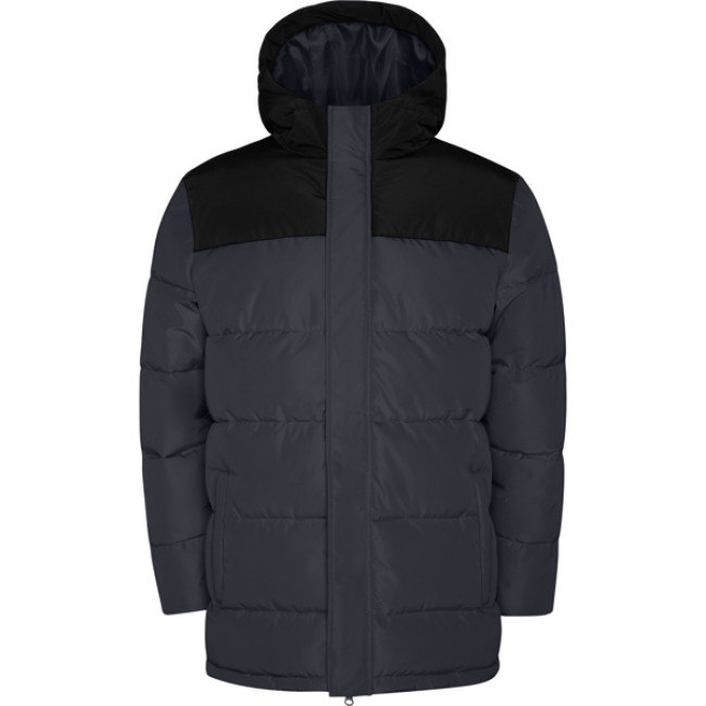Giacca imbottita con cappuccio non removibile, progettata per offrire calore e protezione. Presenta una cerniera anteriore coperta da un'abbottonatura e due tasche laterali con cerniera. I polsini elastici e l'accesso interno per lavaggio/trattamento ne aumentano la funzionalitร .
