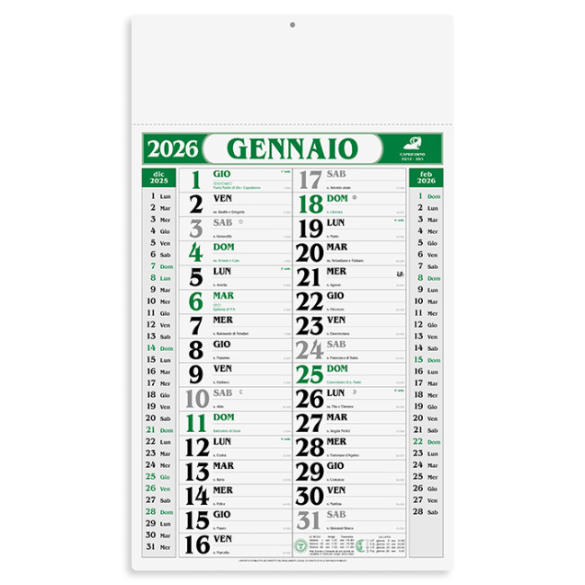 calendario: cm 31x53,5 ca testata: cm 31x10,5 ca
