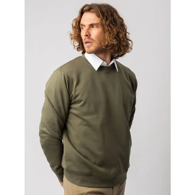 80% cotone organico, 20% poliestere riclicato. Felpa girocollo, genderless, morbido tessuto ecosostenibile trattato ad enzimi, maniche set-in, struttura con cuciture laterali. Collo, fascia in vita e polsini in costina, rinforzo sul colletto. Tessuto interno felpato in poliestere, esterno 100% cotone per una migliore stampabilitร . Etichetta taglia tessuta al collo ed etichetta laterale strappabile con logo, composizione e istruzioni di lavaggio.