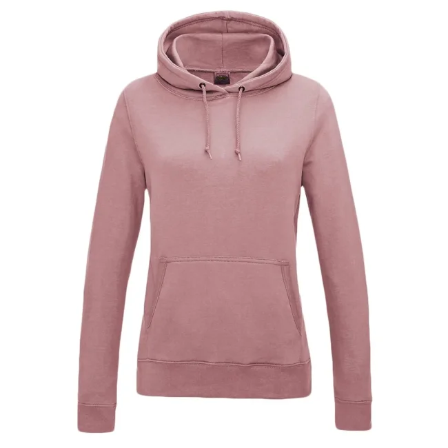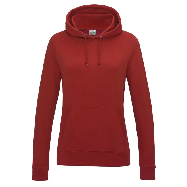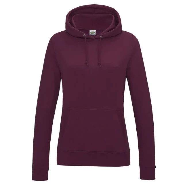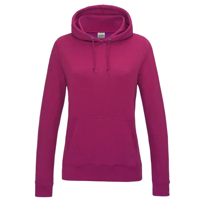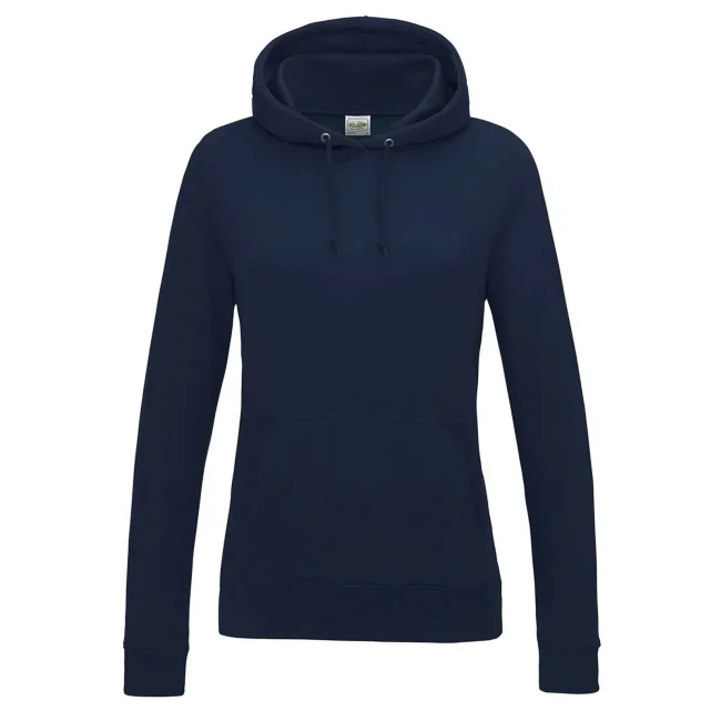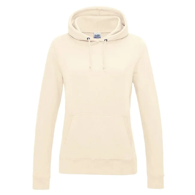 80% Cotone Ringspun 20% Poliestere. Felpa da donna con cappuccio a doppio strato, cordoncini tono su tono, tasca a marsupio, struttura con cuciture doppie, polsini e orlo in vita con dettagli a costine, Felpata internamente. Tessuto morbido sul davanti per una superficie di stampa ideale, etichetta strappabile.