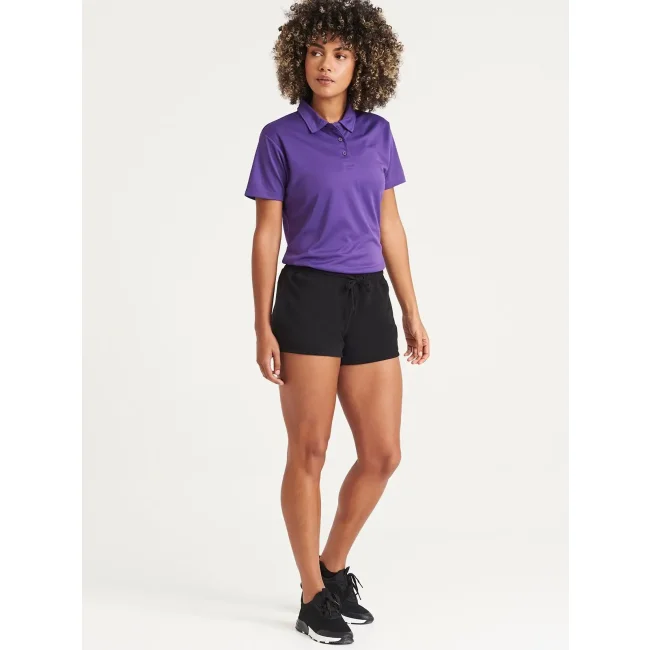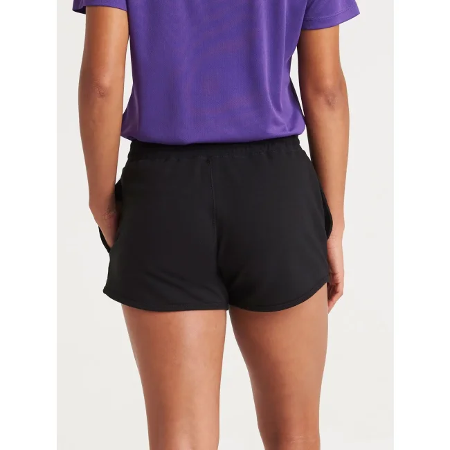 60% poliestere, 35% cotone, 5% elastan. Pantaloncini sportivi da donna con vita elasticizzata, regolazione con coulisse, tasche laterali.
