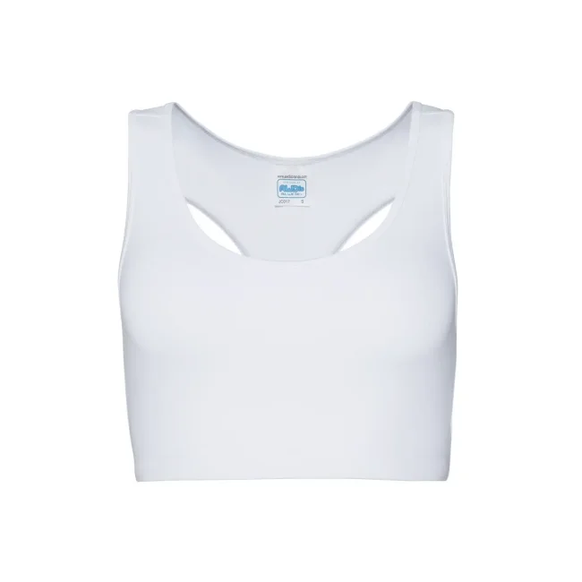 90% nylon 10% elastane. Top dal taglio sportivo, girocollo, fascia elastica, girocollo e giromanica bordati, etichetta strappabile, struttura con cuciture laterali.