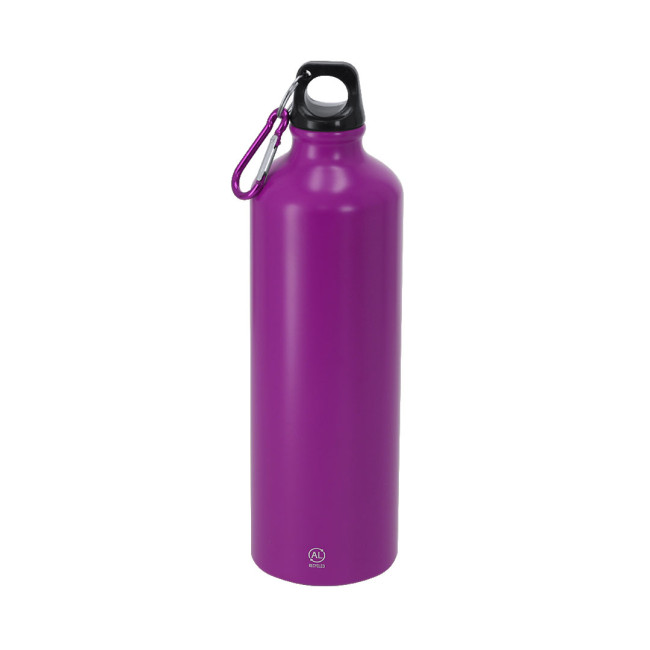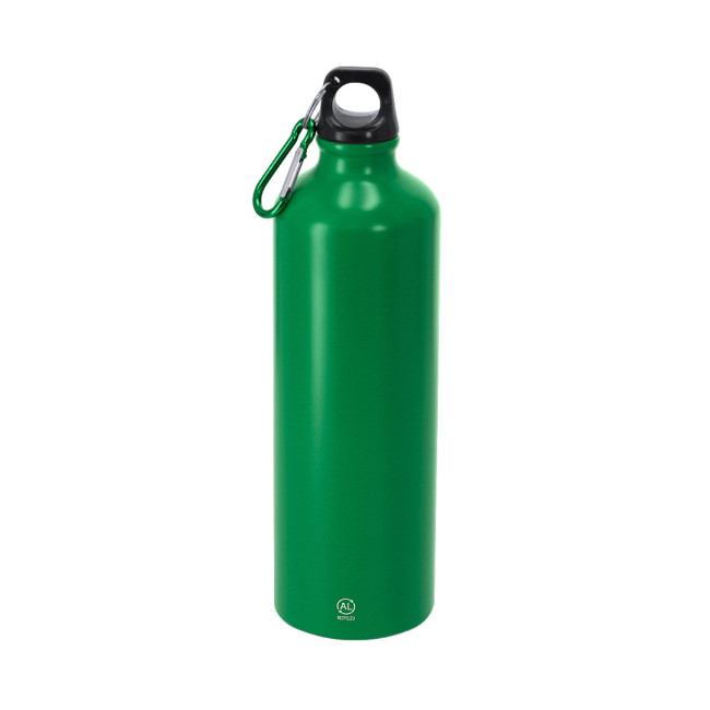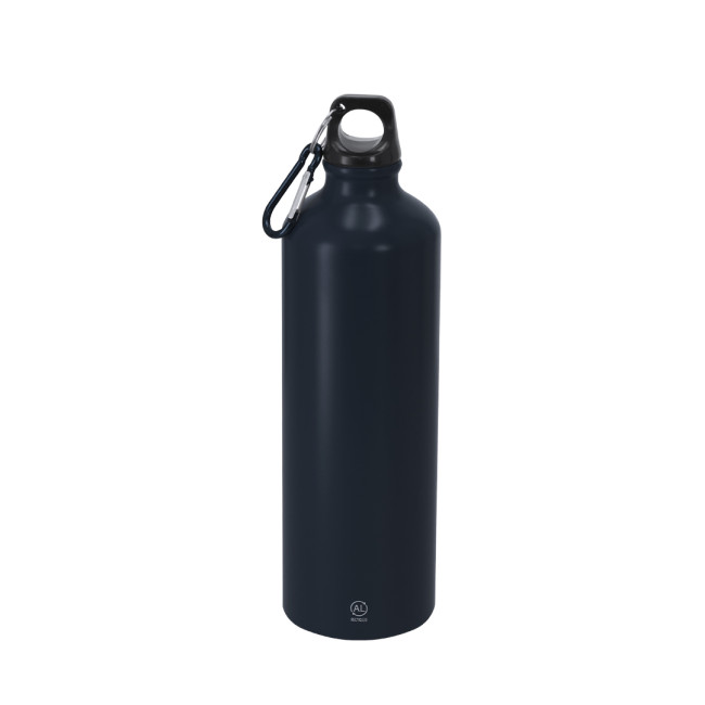 Bottiglia da 800 ml di capacità. Realizzata in alluminio riciclato resistente e sostenibile. Con tappo a vite nero e moschettone abbinato per un facile trasporto. Corpo con finitura satinata. Priva di BPA. Include distintivo Alluminio Riciclato. L'alluminio riciclato è un materiale con possibilità di riciclo quasi infinite, senza perdere le sue proprietà originali e consumando meno energia in questo processo.