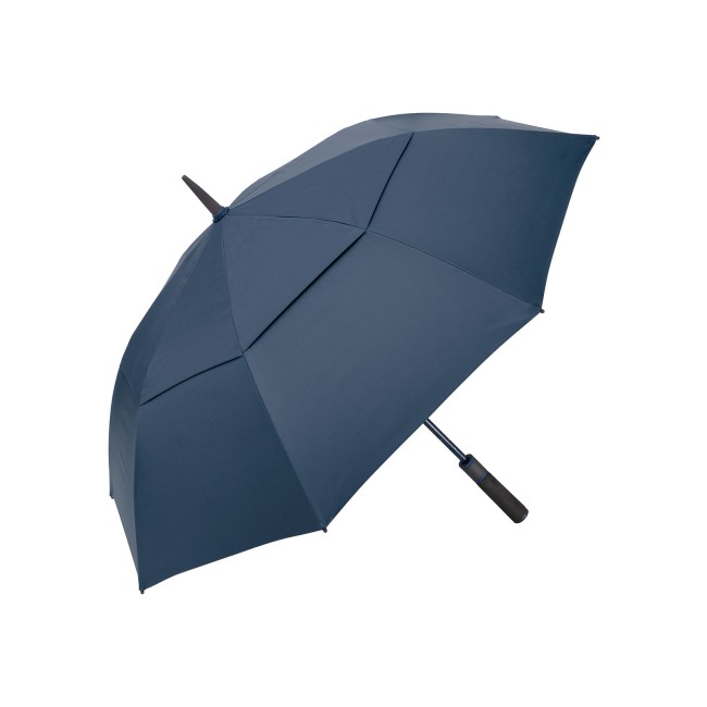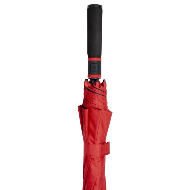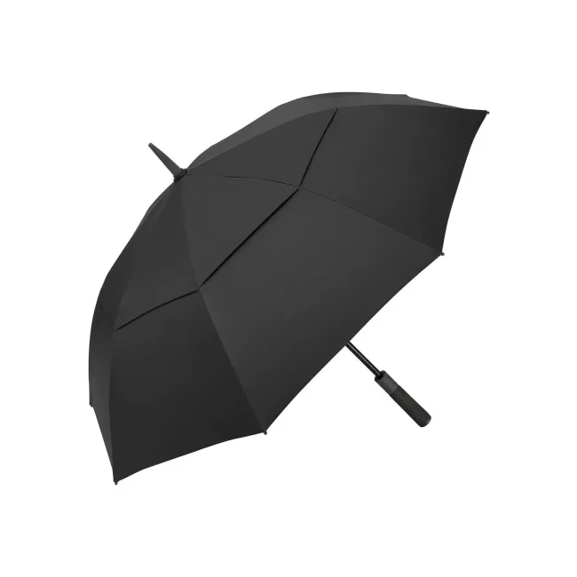 Copertura: 100% poliestere pongee. Manico: plastica. Asta: Fibra di vetro. Ombrello con apertura automatica, sistema Windproof, stecche in fibra di vetro flessibili, bastone in fibra di vetro stabile con motivo 'gocce', fodera ventilante sovrapposta, in poliestere riciclato waterSAVE®, manico soft dritto con occhielli d'impugnatura abbinati alla fodera, tasto di azionamento integrato e possibilità di personalizzazione. Diametro ombrello: 130 cm, lunghezza chiuso: 104 cm, 8 pannelli.