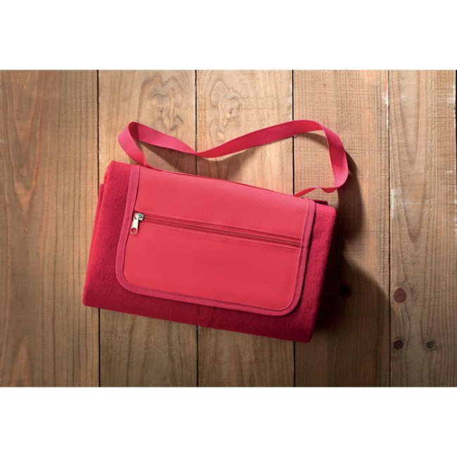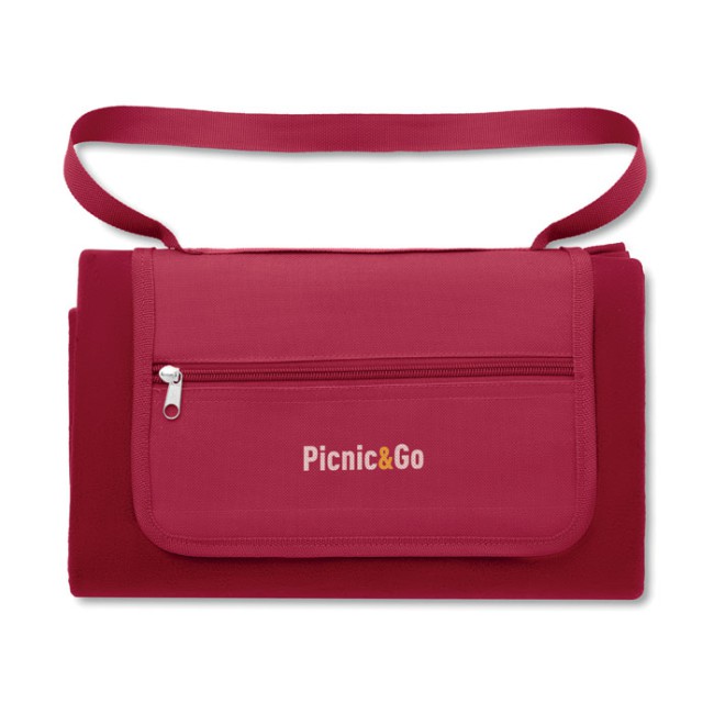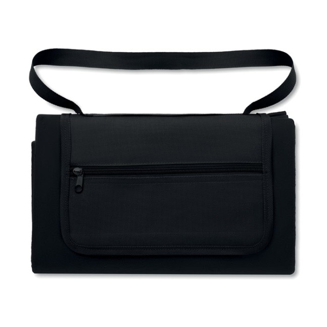 Coperta pieghevole in pile con retro in PEVA rivestito resistente all'acqua.