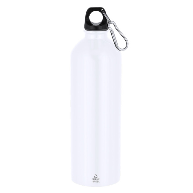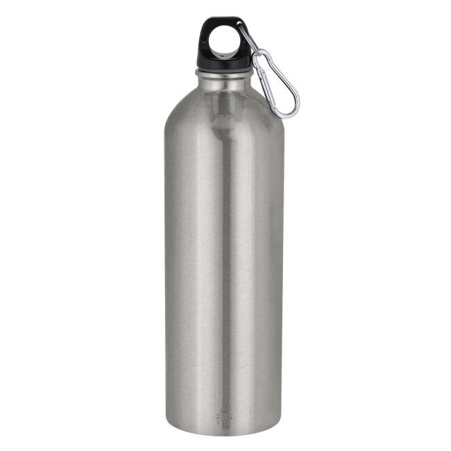 Borraccia da 800 ml realizzata in Acciaio Inox Riciclato con finitura metallizzata. Tappo nero a vite per garantire una chiusura ottimale. Include moschettone in metallo che ne facilita il trasporto. Con distintivo in Acciaio Inox Riciclato. Lacciaio è uno dei materiali più richiesti e si trova praticamente ovunque, dai prodotti di uso quotidiano alle grandi costruzioni. Con innumerevoli proprietà, tra cui spiccano la durabilità e lalto grado di riutilizzo, rappresenta unalternativa molto apprezzata nelle soluzioni di sostenibilità. Adeguatamente trattato, consente di ottenere nuove risorse di utilizzo infinito.