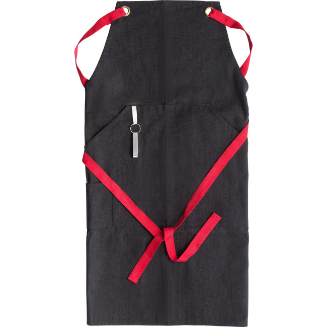 Grembiule in poliestere e cotone con bande colorate, tasca frontale, include apribottiglie