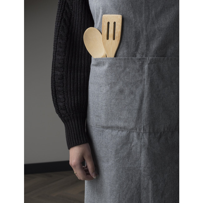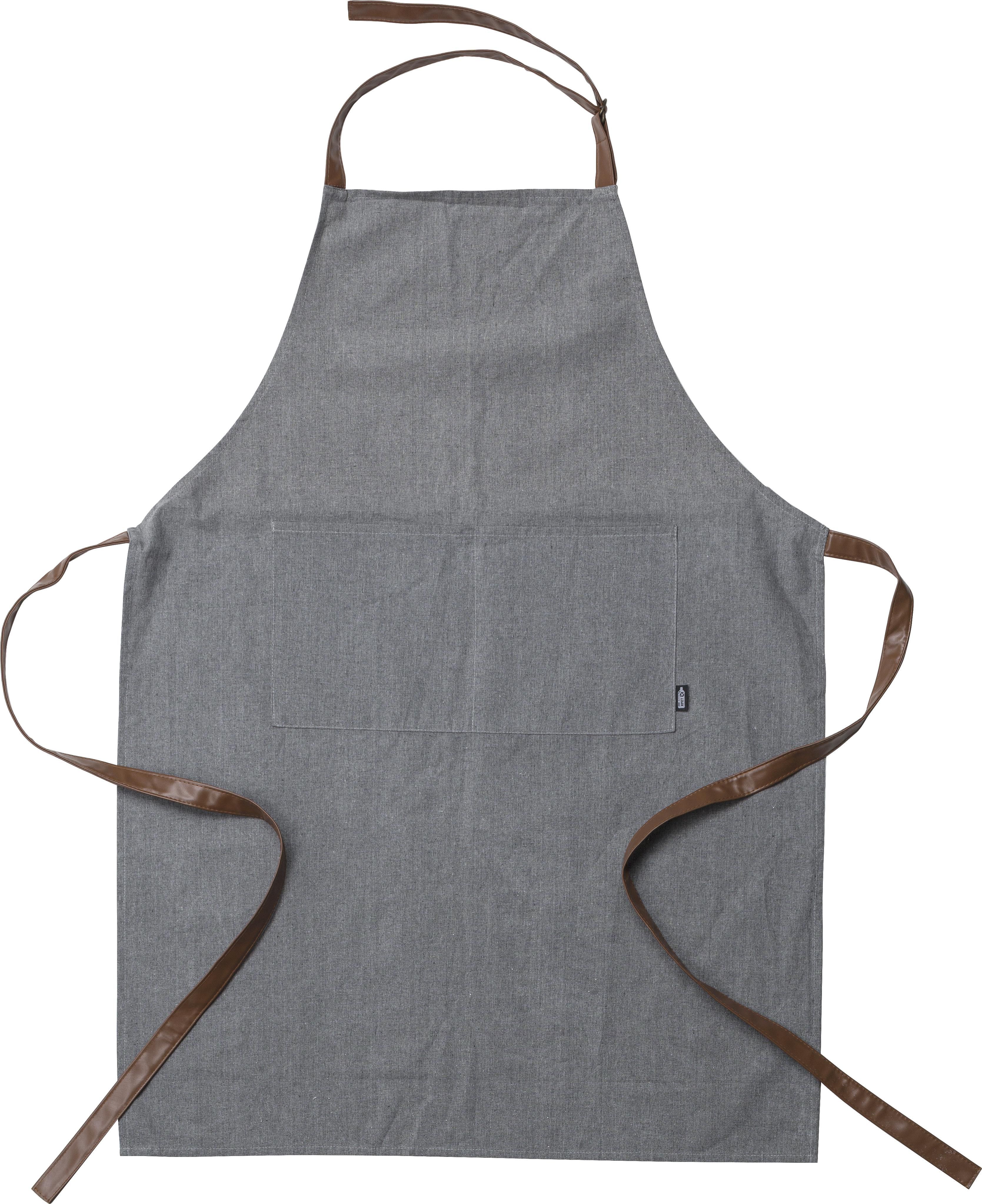Grembiule in 50% rPET e 50% cotone con cinghie regolabili in PU. Include una tasca frontale.