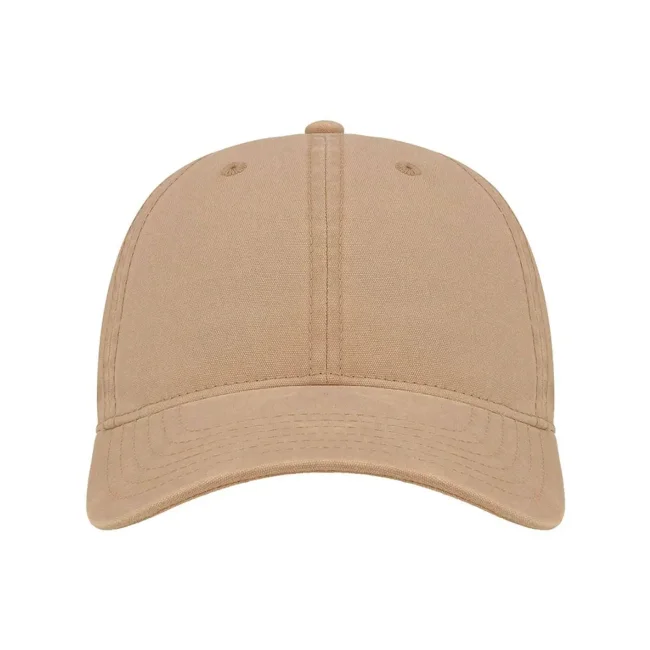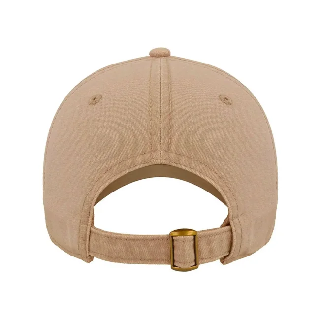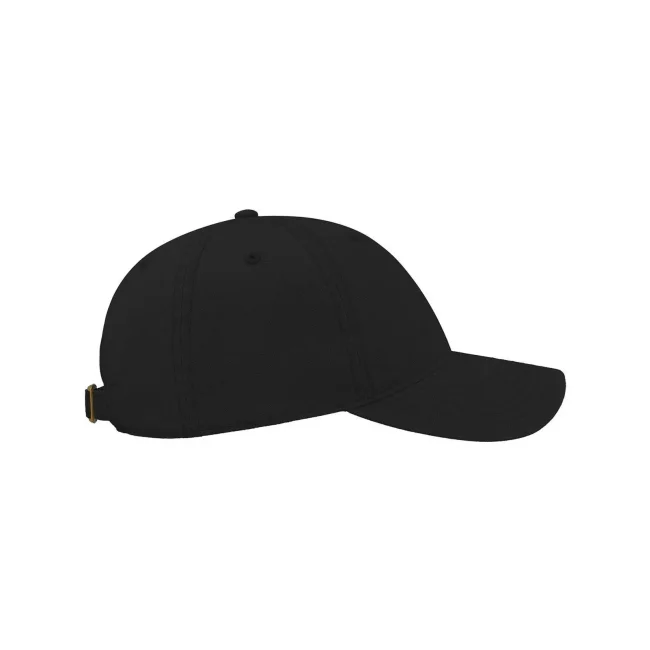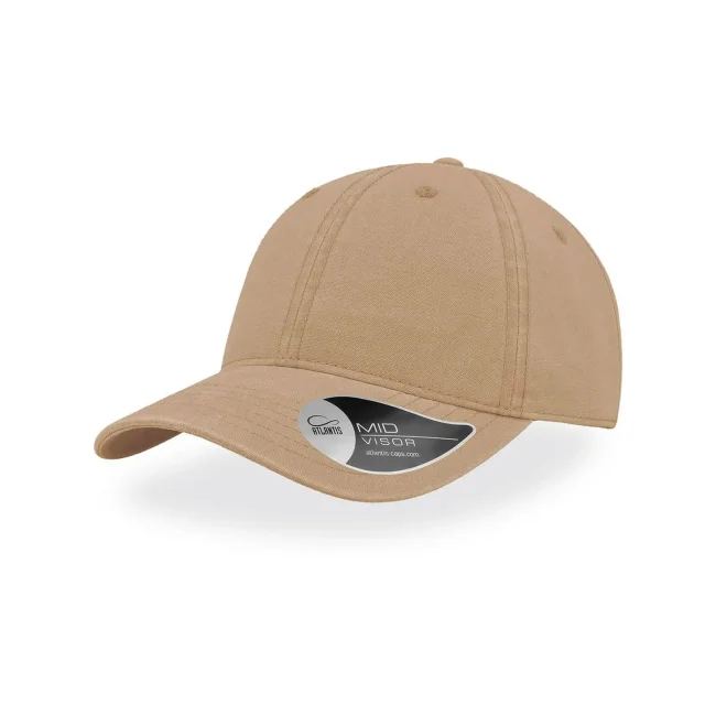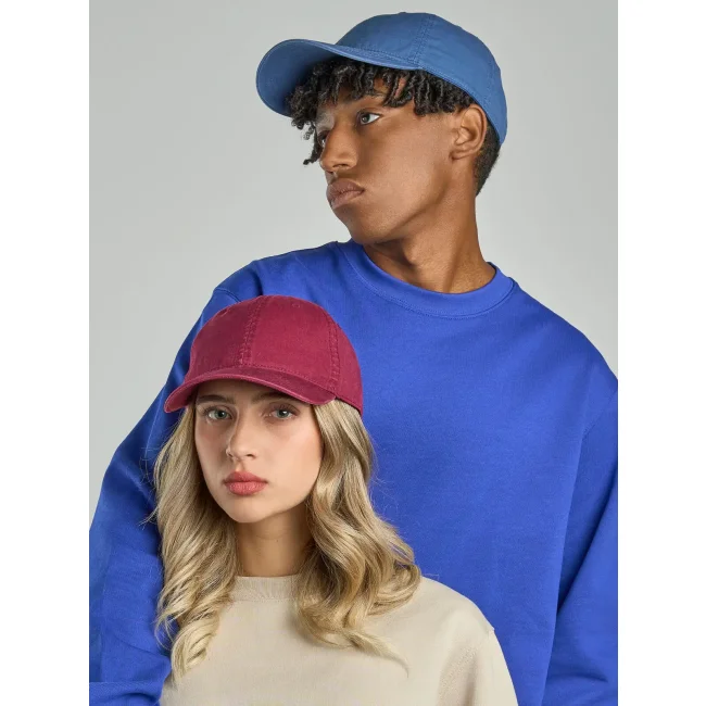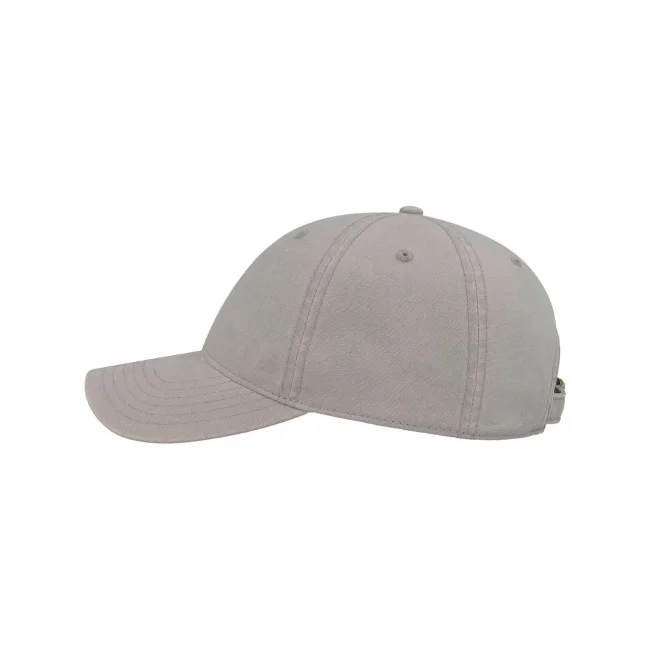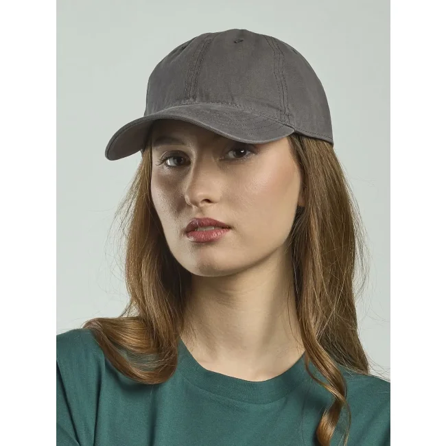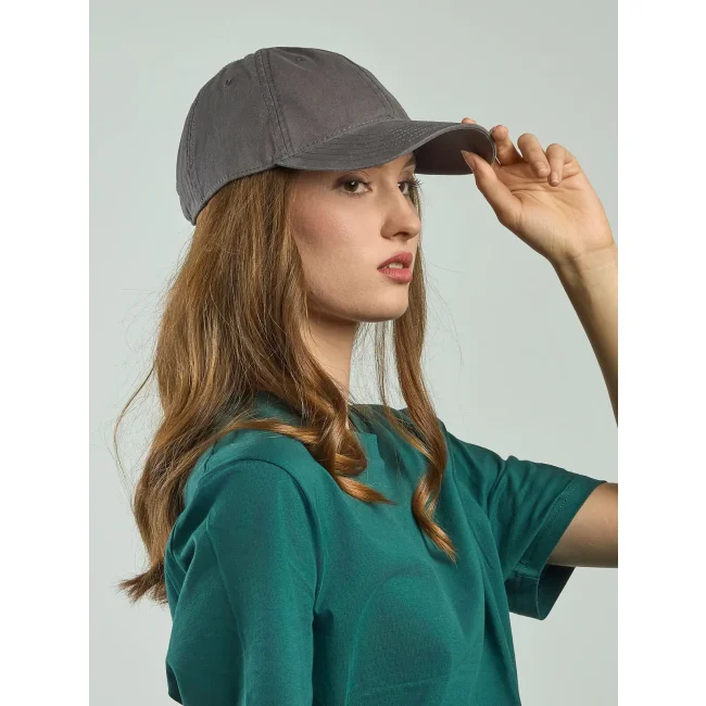 100% Cotone Canvas. Cappellino a 6 pannelli dal look vintage con tessuto effetto lavato. Visiera precurvata, occhielli ricamati, 6 cuciture sulla visiera, chiusura con fibbia in metallo, etichetta removibile.