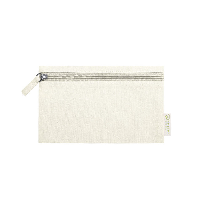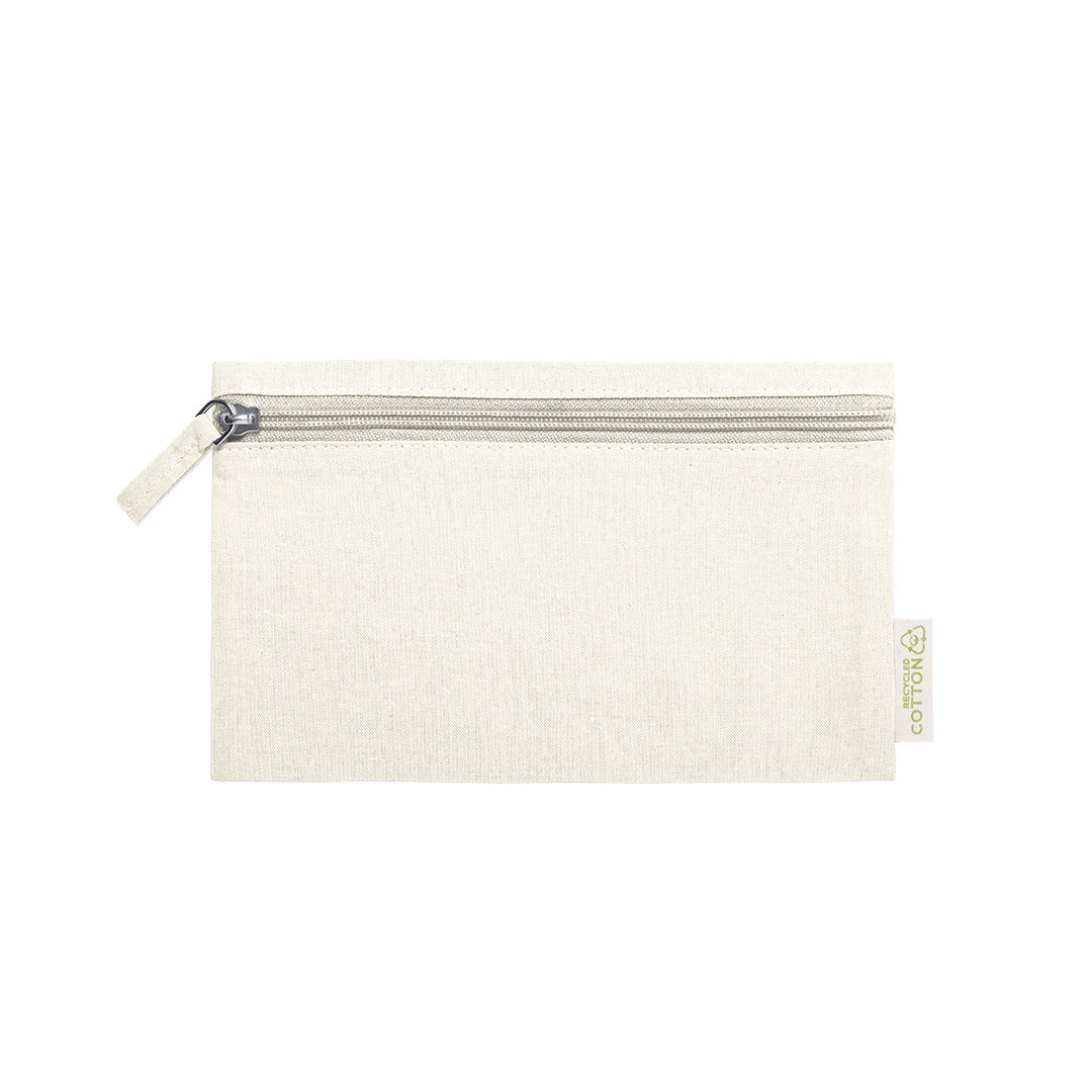 Borsa da toilette della linea Nature in cotone riciclato. Scomparto principale con chiusura a cerniera e tirazip coordinato, con etichetta distinta del materiale cotone riciclato