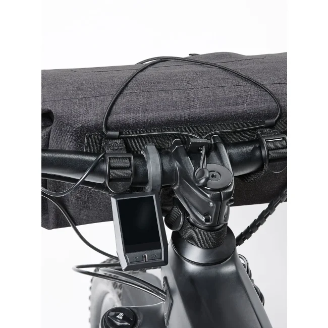 100% Poliestere 600D. Borsa per manubrio, scomparto principale con chiusura avvolgibile bilaterale, lato anteriore con coulisse elastica, tasca anteriore con chiusura lampo. Cuciture saldate per una protezione affidabile da pioggia e umidità, dispositivo per il fissaggio di un riflettore o di un faro per bicicletta. Sistema di cinghia per il fissaggio al manubrio.