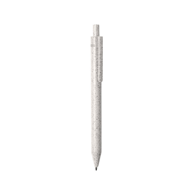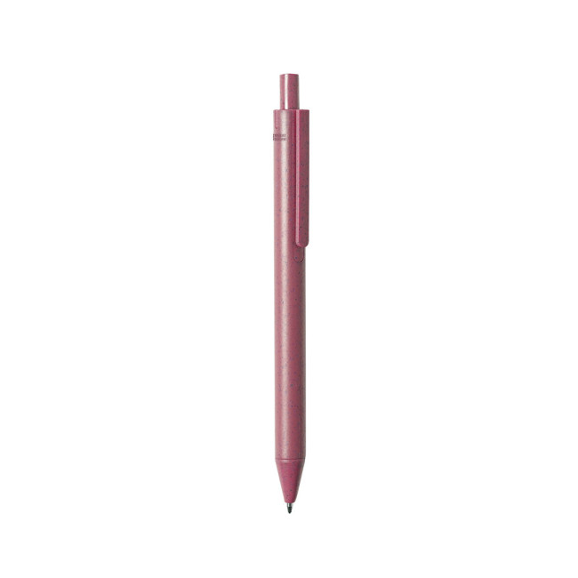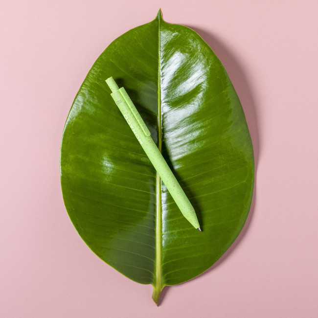 Penna della Linea Nature con meccanismo a pulsante. Fusto in fibra di grano e PP, per favorire l'utilizzo di materie prime naturali e ridurre le emissioni inquinanti. Clip con ampia area di stampa, disponibile in un'ampia gamma di colori pastello e refill blu. Con il logo Wheat Straw sulla parte superiore della penna
