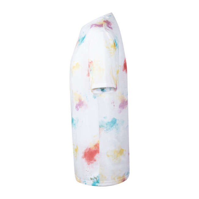 T-shirt taglia adulto in materiale 100% poliestere traspirante da 160 g/m2 con trama in cotone. Con scollo rotondo e design audace con stampe ispirate a una tavolozza di colori. Disponibile nelle taglie S, M, L, XL, XXL.