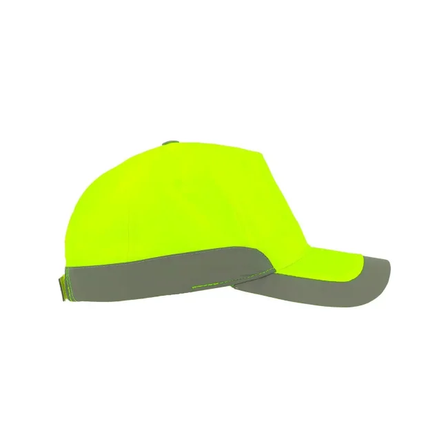 100% poliestere. Parasudore: 35% cotone, 65% poliestere. Cappellino a 5 pannelli, occhielli ricamati, banda riflettente, pannello frontale rinforzato, visiera pre-curvata, chiusura in velcro, ideale per la stampa, bottone riflettente, taglia unica.