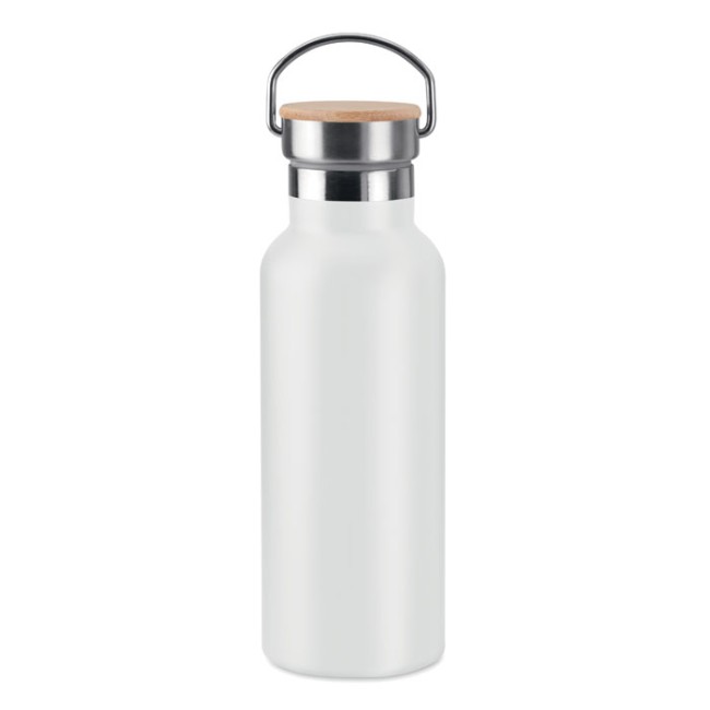 Thermos doppio strato 500 ml. In acciaio inossidabile. Coperchio in bamboo con manico. Stampa in sublimazione disponibile sono sull’articolo di colore bianco.Antigoccia.