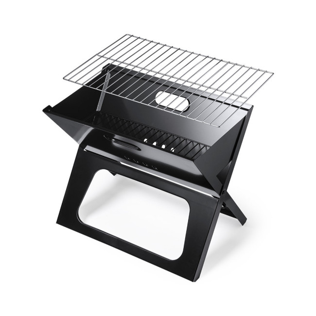 Barbecue pieghevole in robusto metallo con finitura nera. Con comode maniglie e griglia, facile da piegare e di dimensioni compatte. Confezionato in un'attraente scatola dal design individuale.