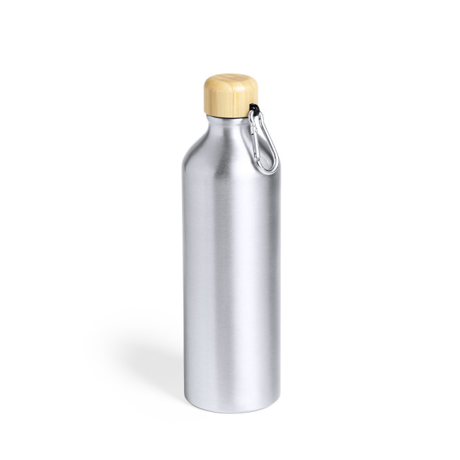 Borraccia della linea natura con capacità di 800 ml. Corpo in alluminio con finitura opaca e coperchio in bambù con moschettone in tinta per un facile trasporto. Senza BPA e presentata in unattraente scatola di eco-design.