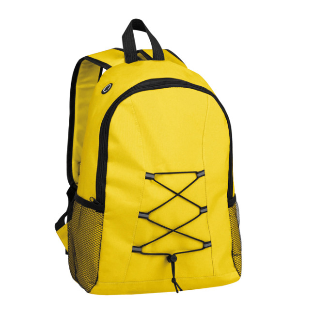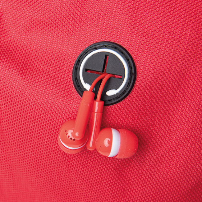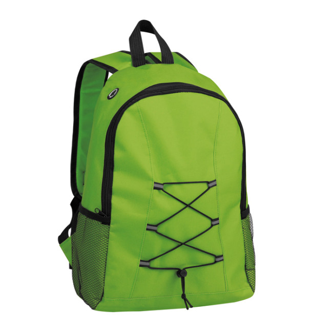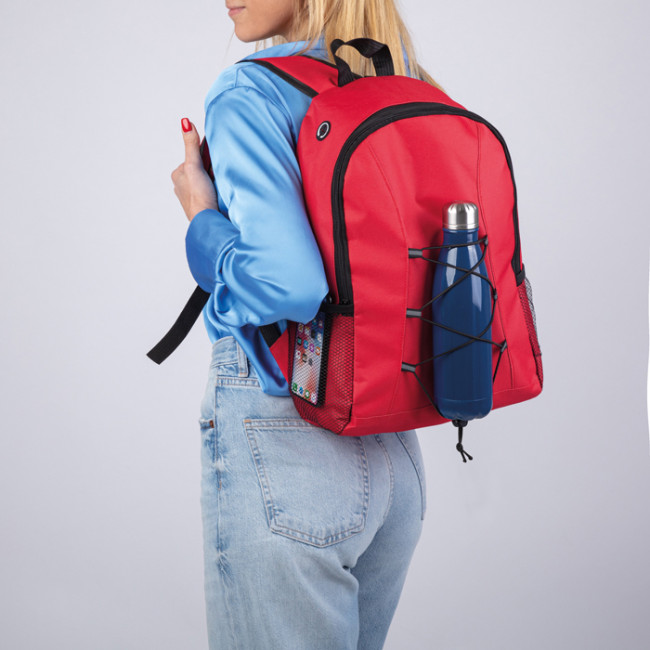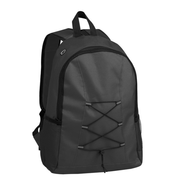 zaino poliestere 600D ampio vano interno porta auricolari doppia tasca laterale traforata spallacci imbottiti e regolabili elastico frontale regolabile