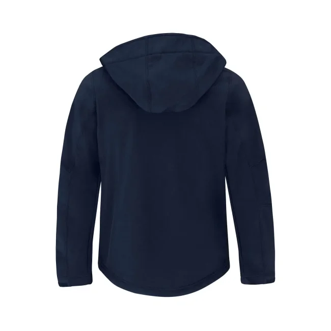 Hooded Softshell Men, realizzata in 94% poliestere e 6% elastane, è una giacca tecnica con tessuto a triplo strato. Dotata di cappuccio removibile con zip e regolabile con elastico, presenta due tasche frontali con cerniera per un comfort pratico e funzionale.