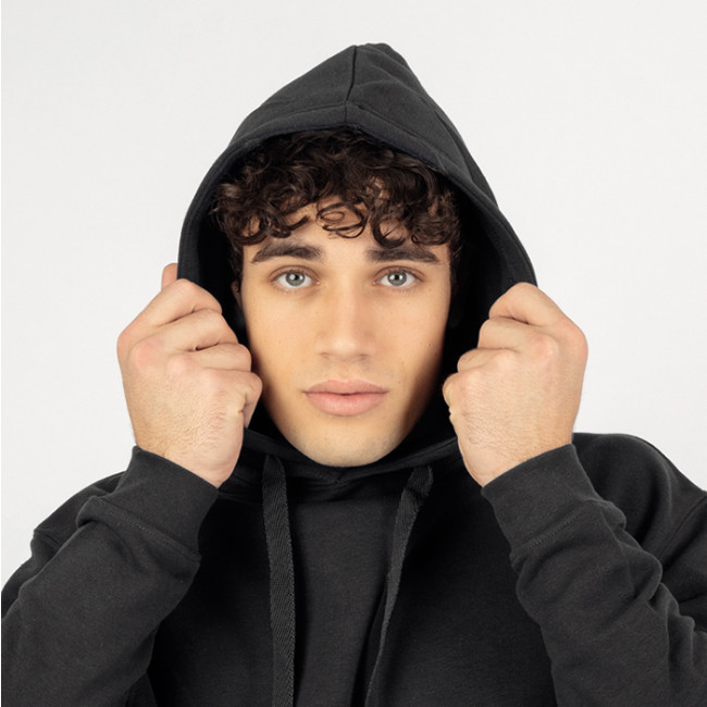 felpa con cappuccio e cordoncini polsini e girovita elasticizzati tasca a marsupio ribattitura doppio ago su collo, maniche e orlo colori reattivi 280 g/m2