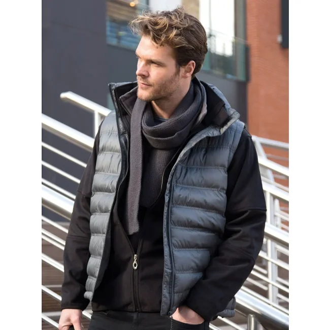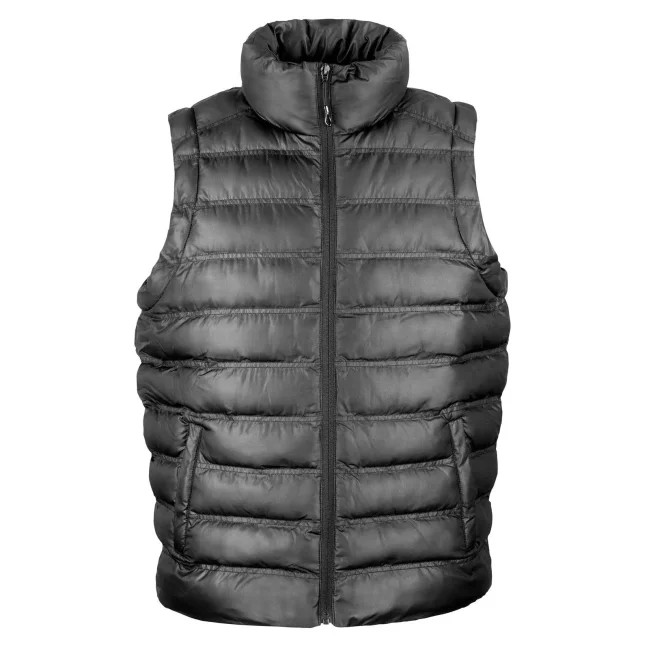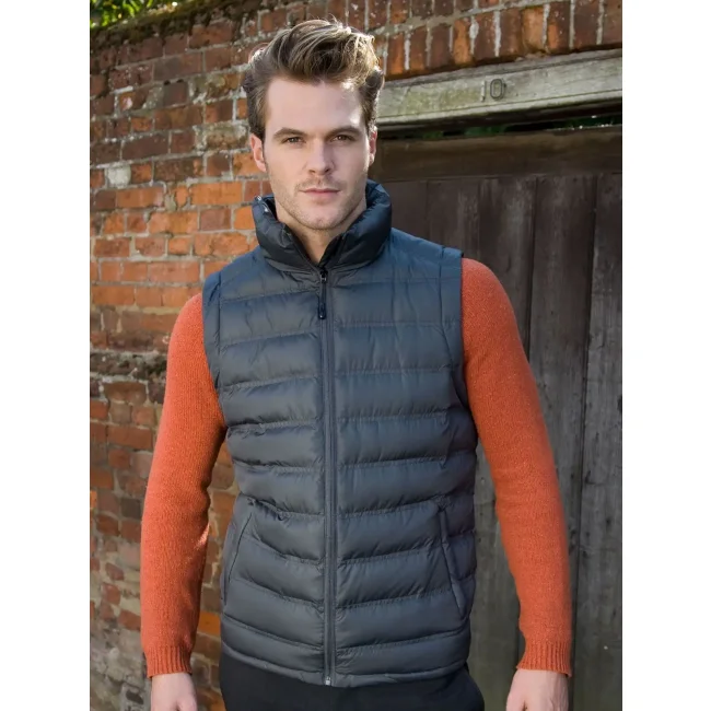 Materiale esterno: 100% poliestere 50D, Fodera: 100% poliestere taffetà, Imbottitura: 100% poliestere. Gilet smanicato imbottito con zip intera e colletto alto, due tasche frontali con cerniera, taschino interno. Vestibilità moderna.