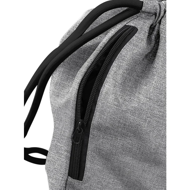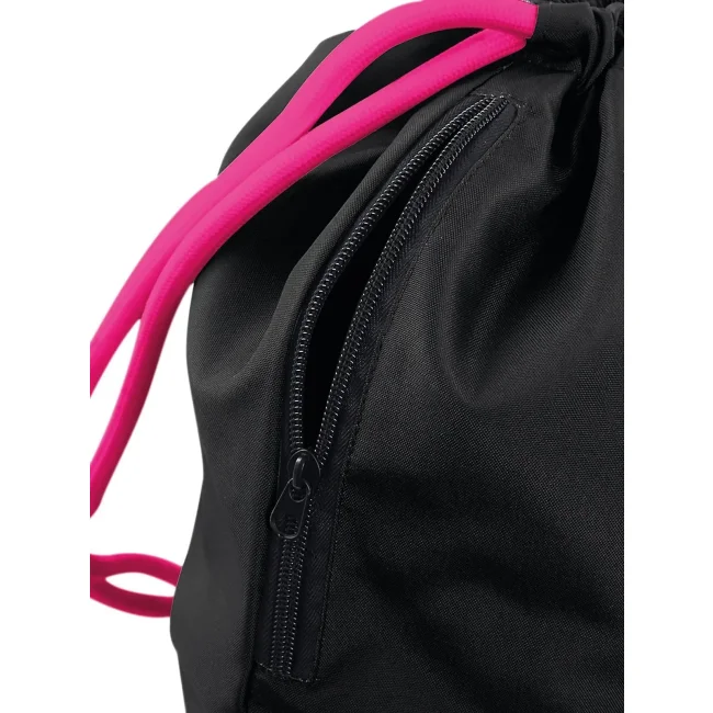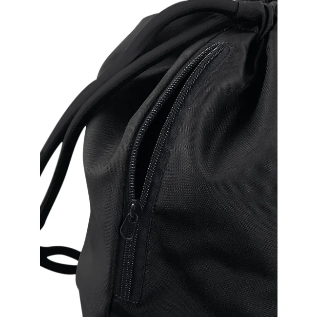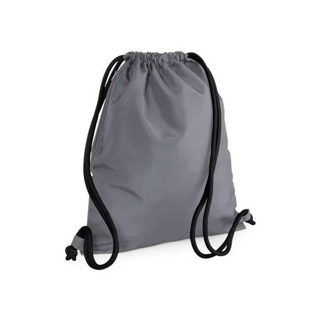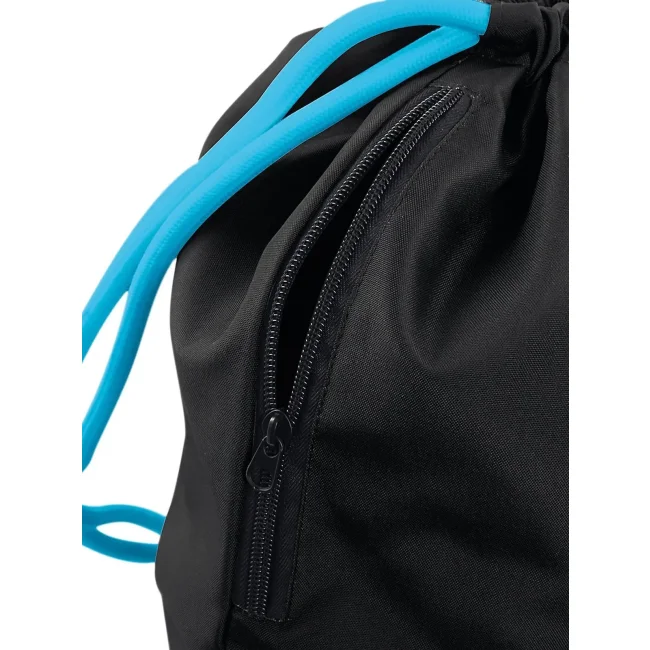 100% poliestere 300d. Sacca con tasca interna laterale con cerniera, cordoncini spessi Dimensioni: 40 x 49 cm, capacita' 15 litri, area stampabile: 36 x 42 cm.