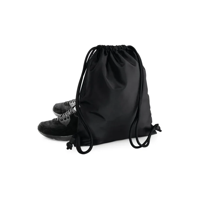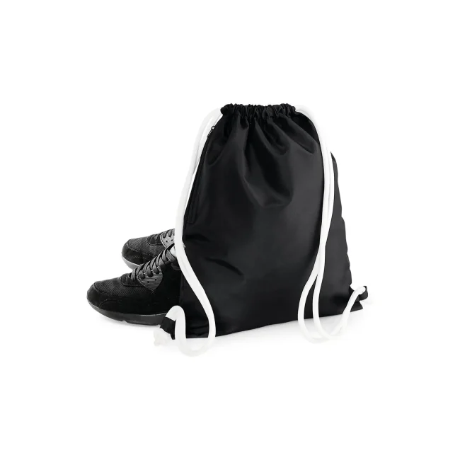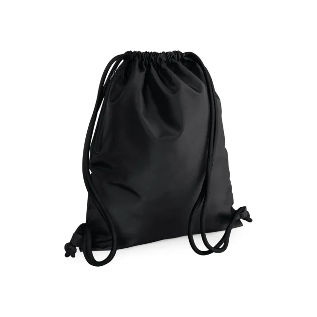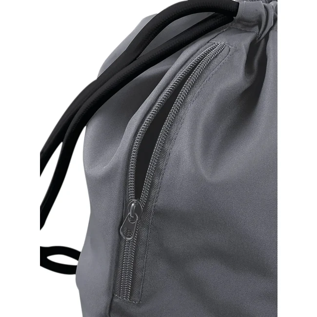 Icon Drawstring Backpack realizzata in 100% poliestere 300D, con tasca interna laterale con cerniera. Le dimensioni sono 40 x 49 cm, con una capacità di 15 litri e un'area stampabile di 36 x 42 cm. I cordoncini spessi offrono un trasporto comodo e sicuro.