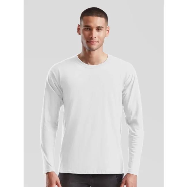 100% cotone ringspun. Maglia a maniche lunghe da uomo, taglio classico, colletto a costine, nastro di rinforzo da spalla a spalla, etichetta strappabile, lavaggio a 60°C.
