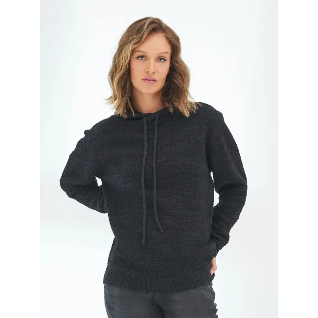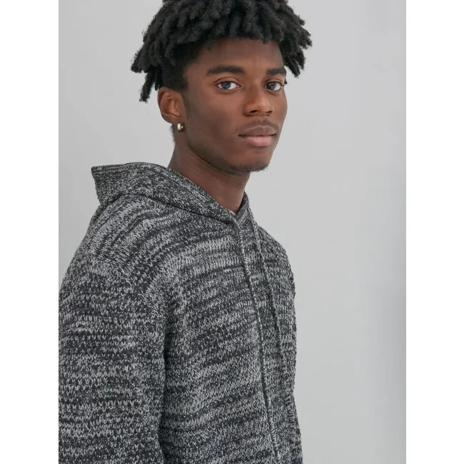 70% cotone rigenerato, 30% poliestere. Felpa con maniche set-in, colletto a costine, cappuccio con cordoncino, struttura con cuciture laterali, sgarzata, etichetta strappabile.