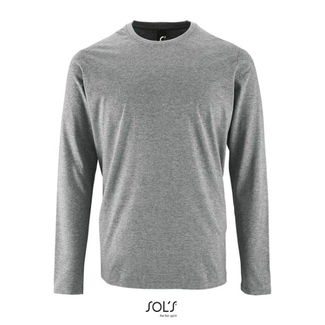 SOL'S IMPERIAL LSL MEN, T-shirt a maniche lunghe da uomo, 100% jersey di cotone semi-pettinato Ringspun 190, colletto a coste con elastan, maniche lunghe, tubolare, nastro all'interno del colletto, (1) Charcoal Melange: 60% cotone / 40% poliestere, (2) Grey Melange: 85% cotone / 15% viscosa. Per la corrispondenza delle taglie, fare riferimento alla tabella delle taglie nella sezione Documentazione del prodotto.