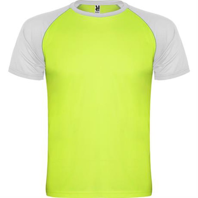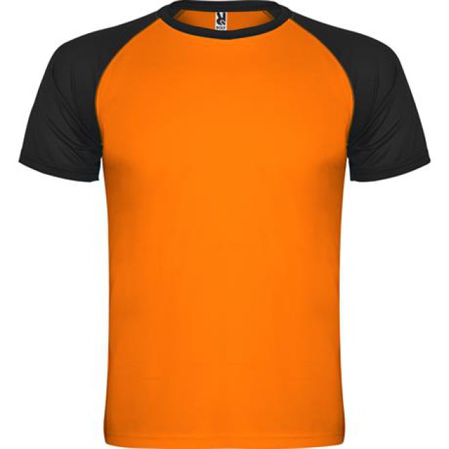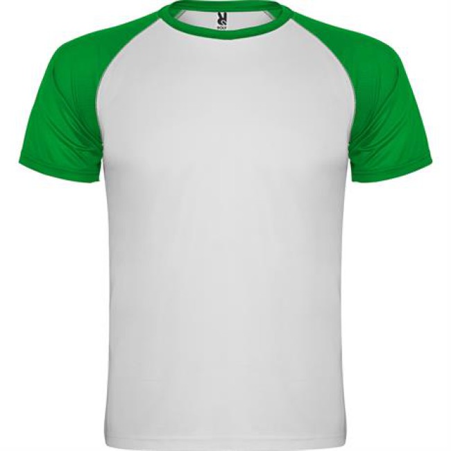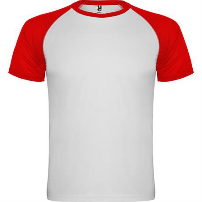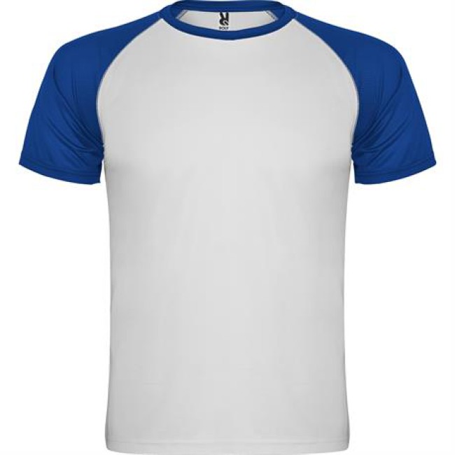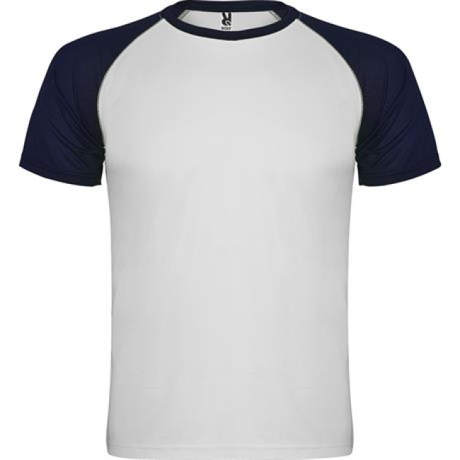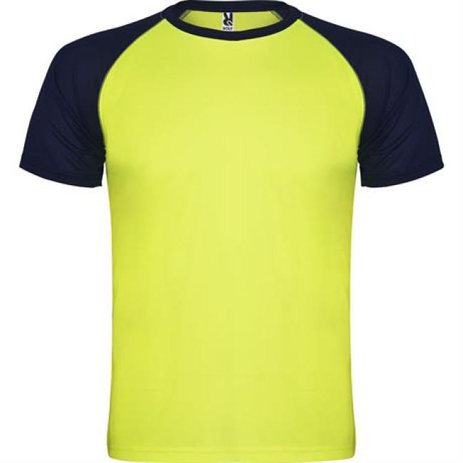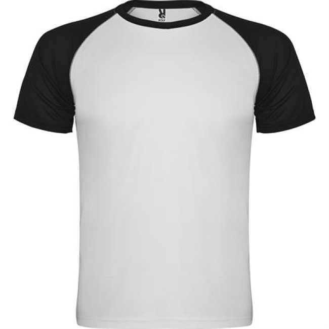 T shirt sportiva manica corta taglio raglan. Girocollo in contrasto con copri cuciture di rinforzo all'interno.