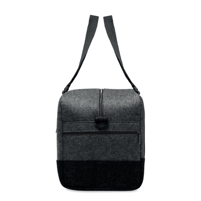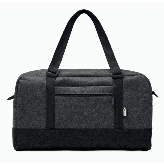 RPET feltro sport/fitness o borsa weekend con tasca frontale con cerniera. Portate in palestra tutta l'attrezzatura per l'allenamento in questa borsa in feltro dall'aspetto elegante. Portatela per i manici in tela o usate la tracolla staccabile e regolabile per un facile trasporto. Nella tasca frontale potete riporre gli oggetti più piccoli o gli effetti personali mentre fate ginnastica. La borsa è realizzata in plastica PET riciclata.