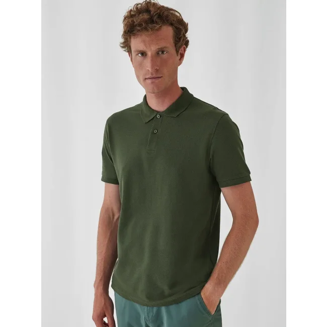 100% cotone organico o organico in-conversion ring-spun, piqué. Polo a maniche corte set-in con costina, morbida al tatto, struttura con cuciture laterali, etichetta strappabile. Heather Grey: 90% cot. 10% vis.