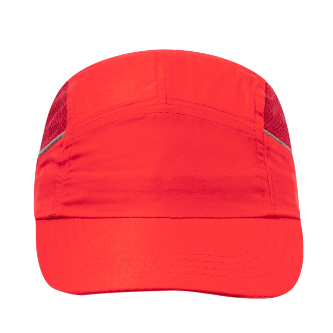 Cappellino sportivo in morbida e resistente microfibra. Con rete antisudore abbinata sui pannelli laterali e chiusura regolabile in velcro. Con strisce rifrangenti sui lati e disponibile in un'ampia gamma di colori - colore bianco appositamente pensato per la stampa in sublimazione -.