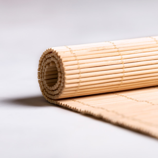Tovaglietta pieghevole dal design rettangolare in legno di bambù in diversi colori. Con robusti rinforzi in filo.