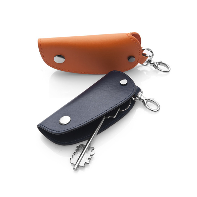 portachiavi con cuciture in tinta gancio e chiusura con bottone in metallo cromato corredato di astuccio regalo