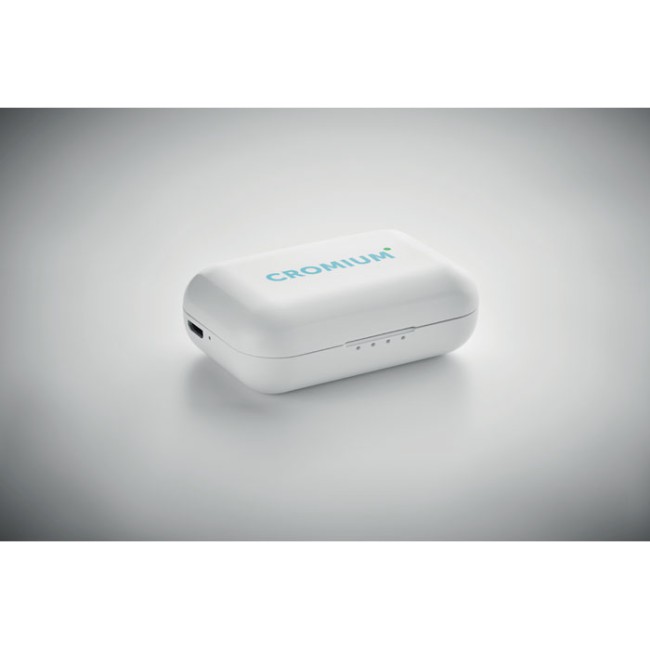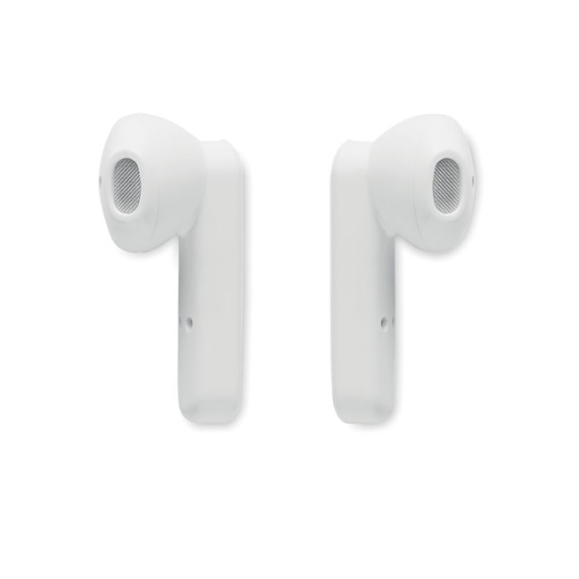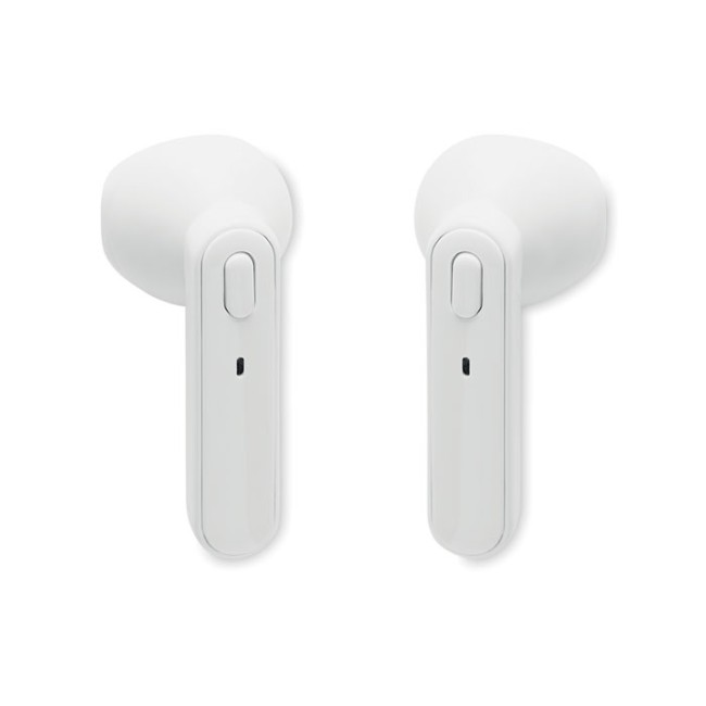 Set di 2 auricolari True Wireless Stereo (TWS) 5.3 con microfono e batteria da 30 mAh integrata. Durata di riproduzione di circa 3 ore. Associazione automatica. Include un cavo di ricarica micro USB e una stazione di ricarica da 185 mAh. Realizzato in ABS riciclato.